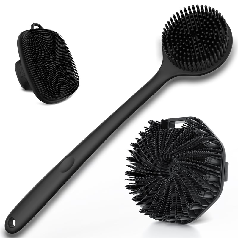 3 PCS Silicone Bath Brush Set,Back Scrubber & Body Brush & Face Brush Set, Super-Exfoliating & Lathering Body Scrubber, Shower Brush, Face Scrubber Combination for HomeBathroom Hotel Travel.(Black)